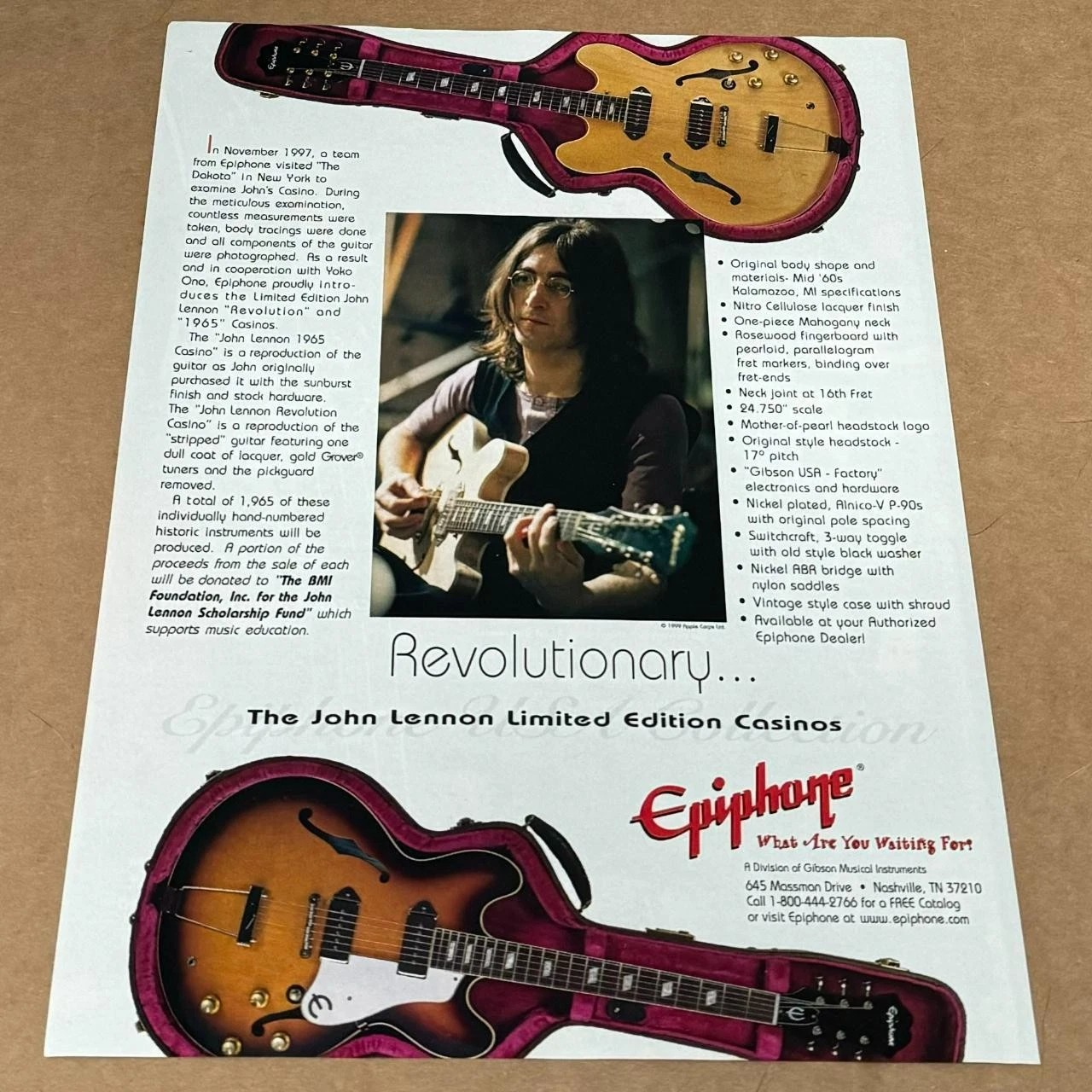 Last stock! Product form EPIPHONE GUITARS - CASINO - JOHN LENNON - 2000 Print Advertisement $5.95 $5.95 each EPIPHONE GUITARS PRINT ADVERTISEMENT Size = Approximately 8 inches X 10 3/4 inches Features - John Lennon Print Date: 2000... 1 in stock Show extra info for delivery time Add to cart This item is a recurring or deferred purchase. By continuing, I agree to the cancellation policy and authorize you to charge my payment method at the prices, frequency and dates listed on this page until my order is fulfilled or I cancel, if permitted. Reviews 0 reviews Share with your friends Share WhatsApp Deel X Pin it Messenger Email Need help with your size? Size finder